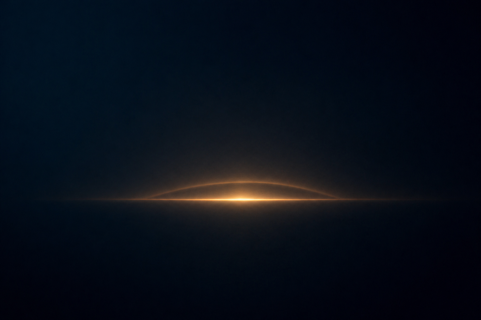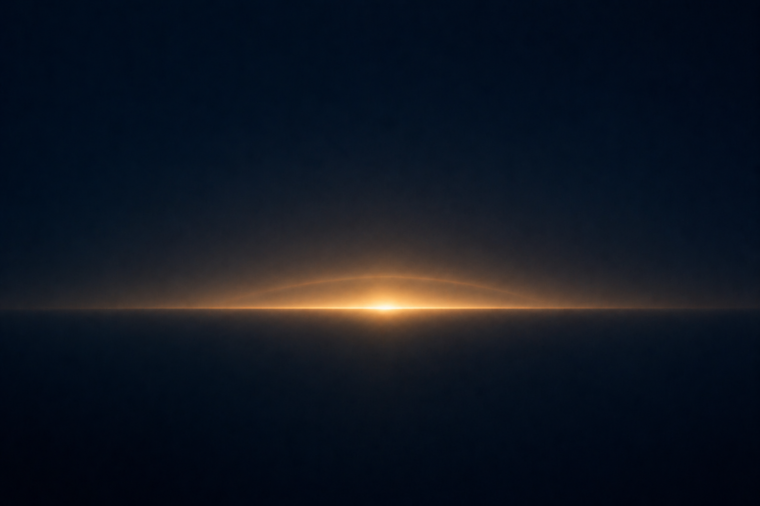The Sunrise Glint — the rim of warm light at the horizon — is the brand's permanent signature. Calm before activation. Never rushed, never decorative, never exaggerated. A daily reset rendered as a single moment.